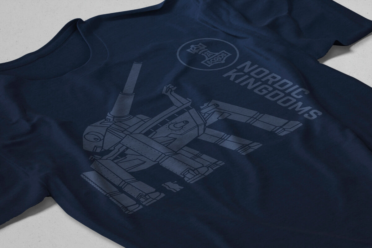 With this shirt we wanted to show off all of those legs, the awesome dragon figureheads, and the large command deck. There’s so much detail to pull out, and we didn’t want to miss any of it.