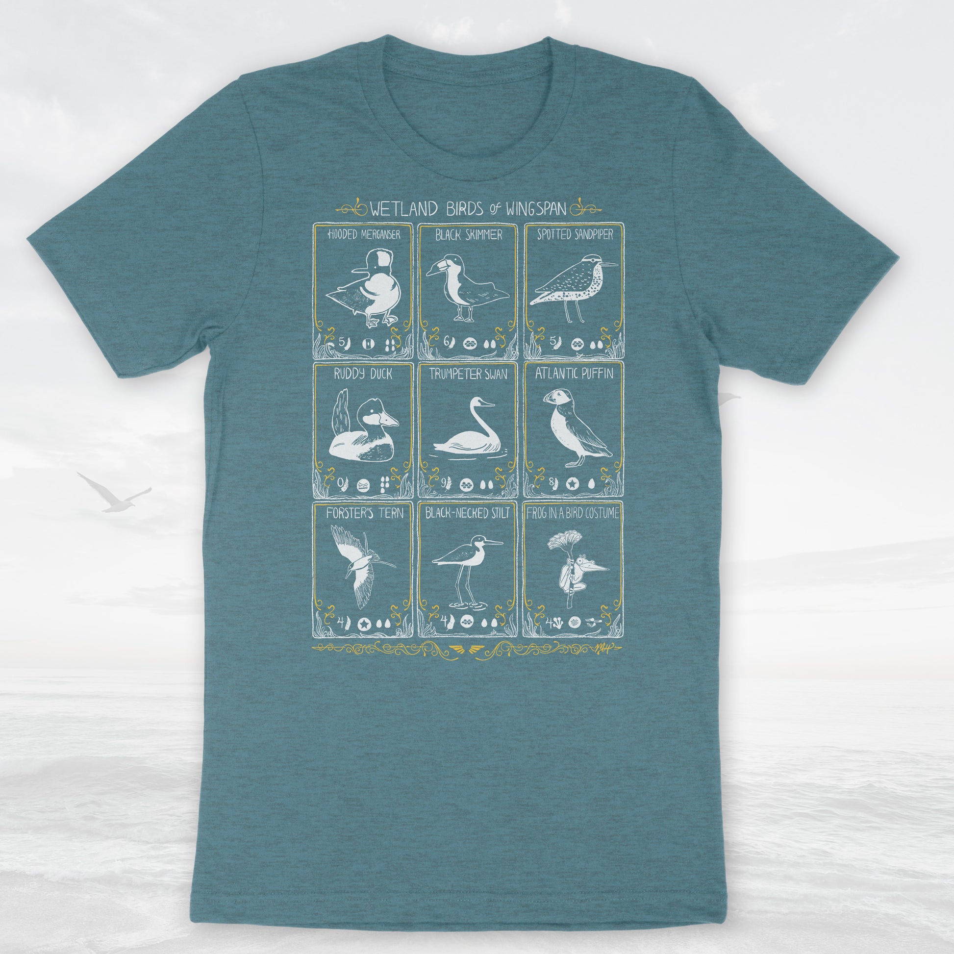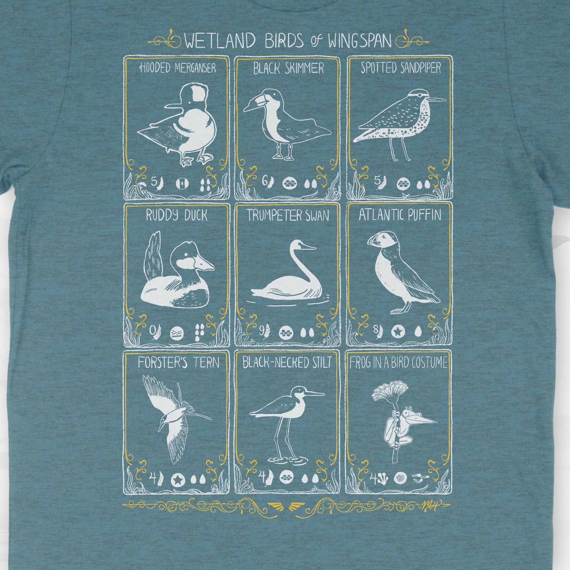 PRE-ORDER CLOSED: Wingspan Board Game T-Shirt - 'Wetland Birds of Wingspan' - Limited Collector's Edition